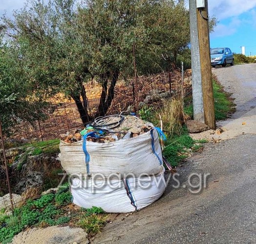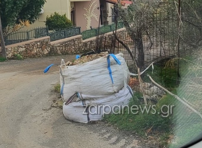 Οικοδομικές τσάντες γεμάτες μπάζα είναι το «ενθύμιο» που άφησε εργολάβος του ΔΕΔΔΗΕ στους κατοίκους στο Πυθάρι Ακρωτηρίου.