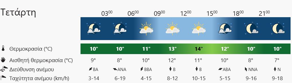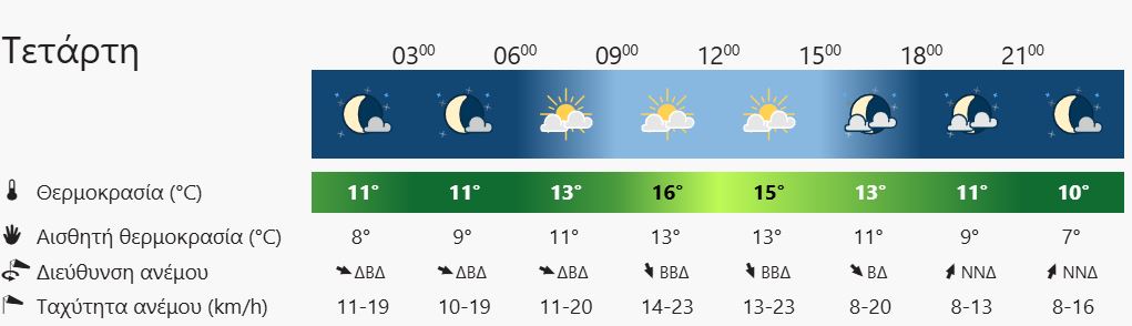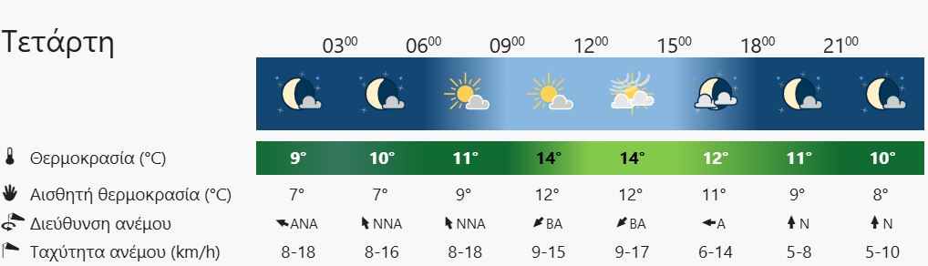 ΘΕΡΜΟΚΡΑΣΊΑ: Από 11 έως 17 και στη νότια Κρήτη έως 18 βαθμούς Κελσίου.