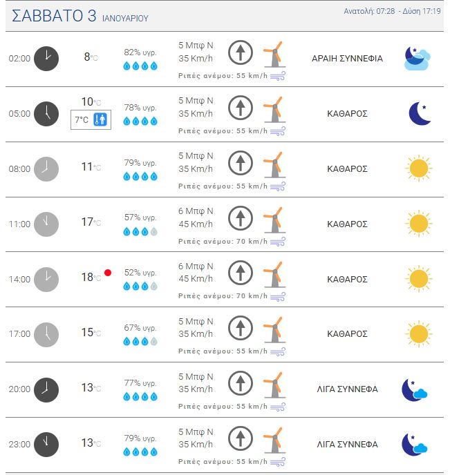 Ο καιρός στην Κρήτη το Σάββατο 3 Ιανουαρίου