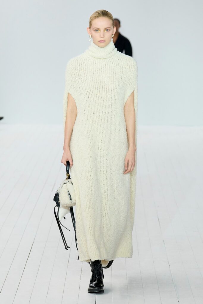 Τα κοσμήματα της σεζόν απλώνονται σε όλο το φάσμα του στυλ ικανοποιώντας κάθε γούστο, με μερικά να τάσσονται με ασφάλεια στη τάση του μινιμαλισμού και άλλα στο αντίθετο-μαξιμαλιστικό- άκρο. Οι κρίκοι και τα διαχρονικά κολιέ από πέρλες ήταν άφθονα στις πασαρέλες, αλλά το ίδιο και οι καρφίτσες και τα εντυπωσιακά μενταγιόν. (Κάθε εμφάνιση της επίδειξης Φθινόπωρο/Χειμώνας 2023 του οίκου Courrèges συνοδεύτηκε από ένα τεράστιο κυκλικό choker που κάλυπτε το ντεκολτέ των μοντέλων.)