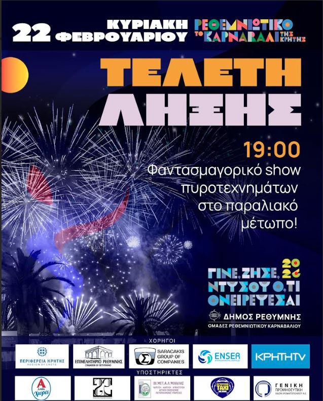 •Εκκίνηση πληρωμάτων και αρμάτων του Ρεθεμνιώτικου Καρναβαλιού 2026 από τον Κόμβο Θεοτοκοπούλου.