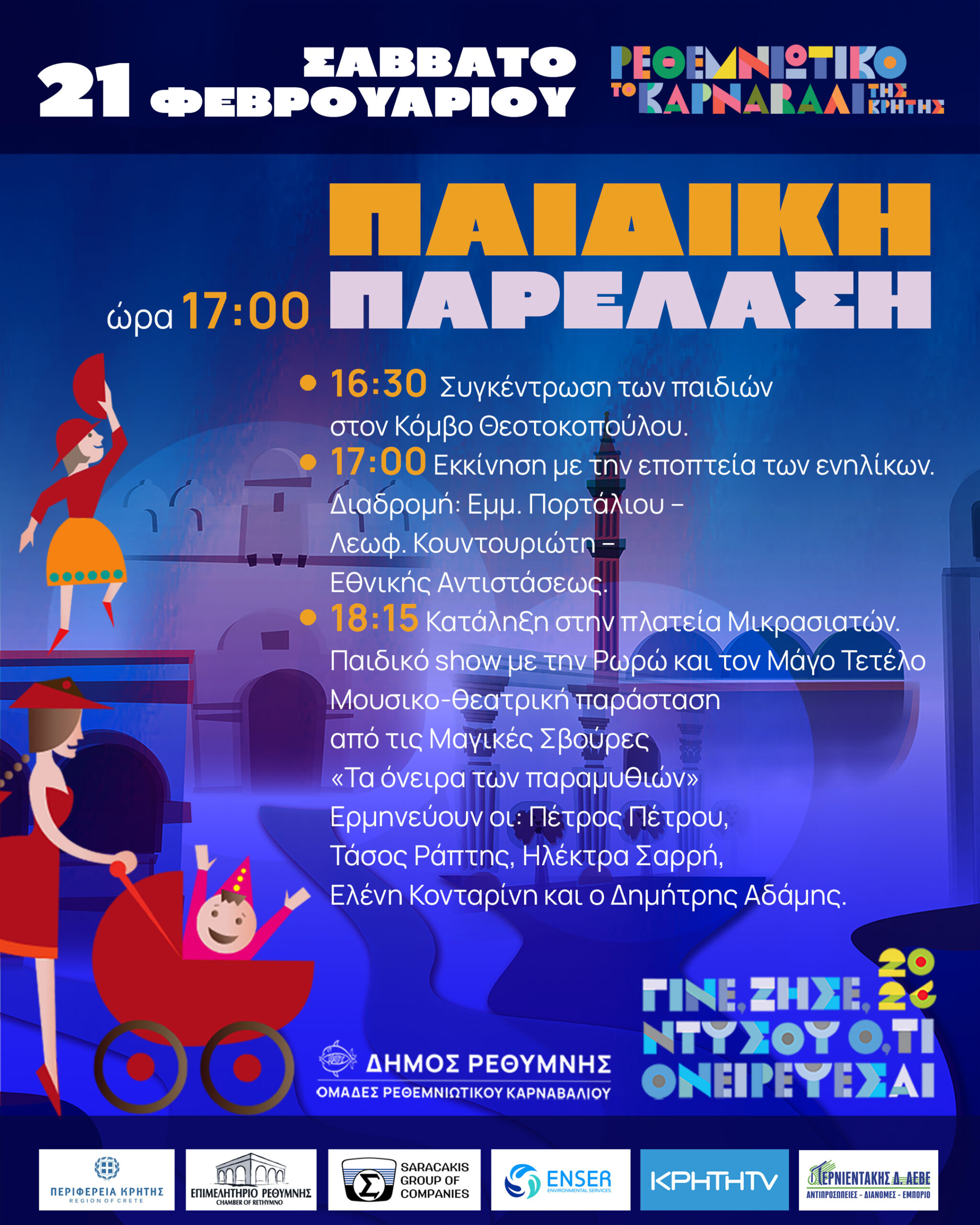 Το Καρναβάλι της Κρήτης, ένα από τα τρία περίλαμπρα καρναβάλια της Ελλάδας, απευθύνει πρόσκληση συμμετοχής σε όλη την Κρήτη, σε όλη την Ελλάδα και καλεί τους φίλους του Ρεθύμνου όπου και αν βρίσκονται, να έρθουν να ξεφαντώσουν στην πόλη της χαράς, της φαντασίας, της δημιουργίας, του πολιτισμού.