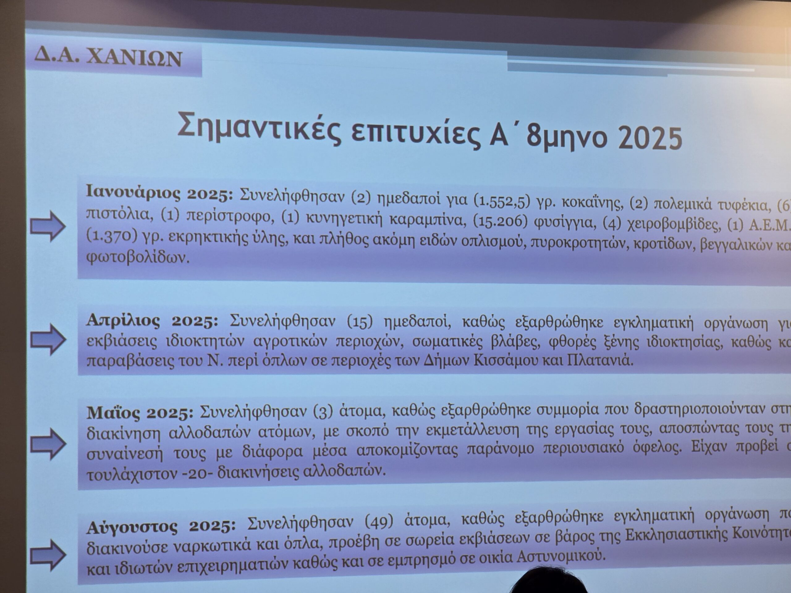 Στο Λασίθι, ο διοικητής ασφαλείας, Γιώργος Μάλλιος αναφέρθηκε στις δύο σημαντικές επιτυχίες του α’ οκταμήνου και συνολικά στην εικόνα στην περιοχή: