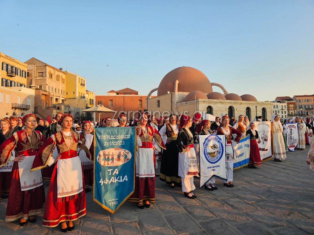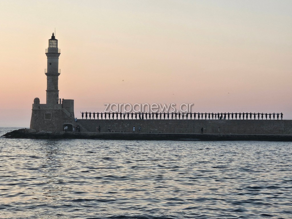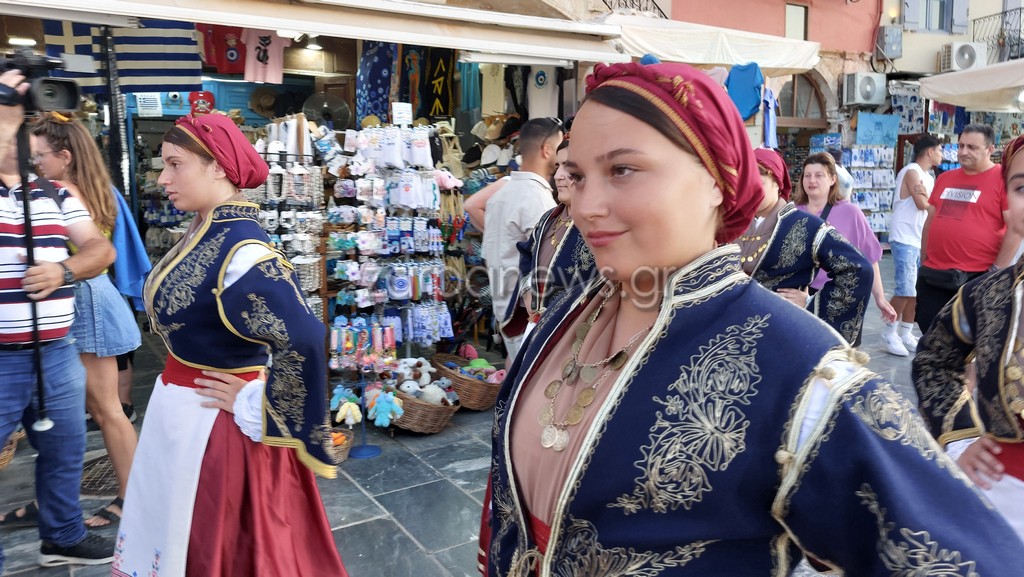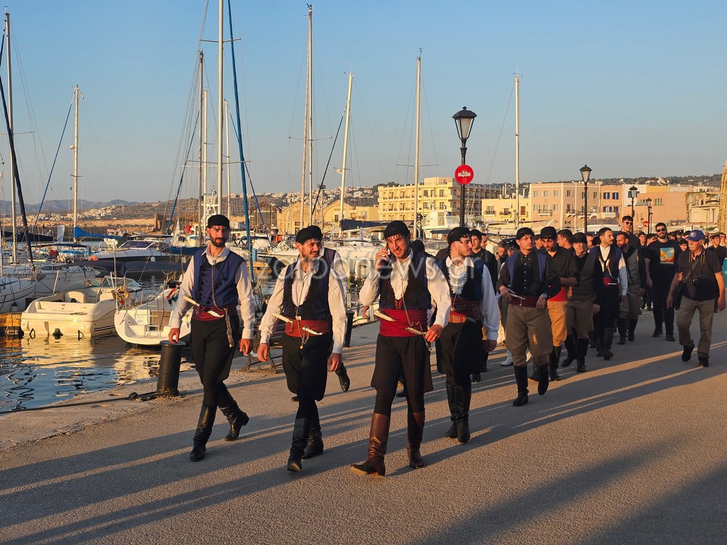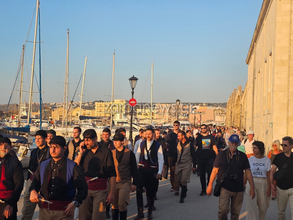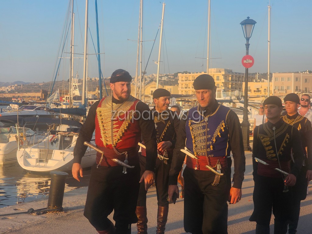 Οι Κρητικοί χορευτές βρέθηκαν στον Λιμενοβραχίονα του Ενετικού Φάρου, που προσέφεραν ένα μοναδικό χορευτικό θέαμα με φόντο το ηλιοβασίλεμα.
