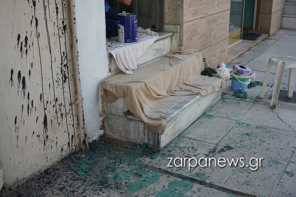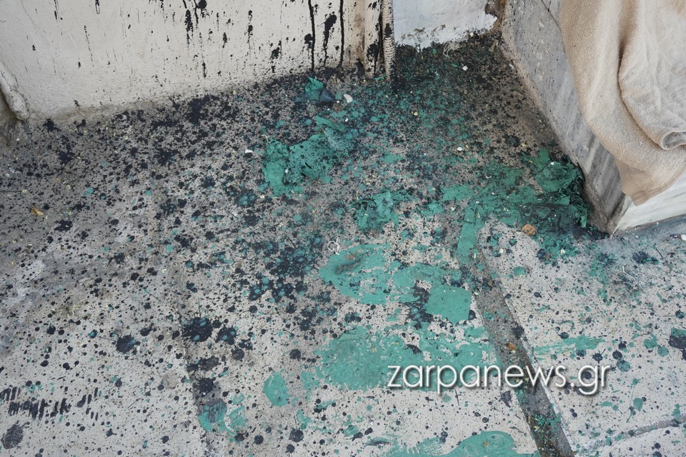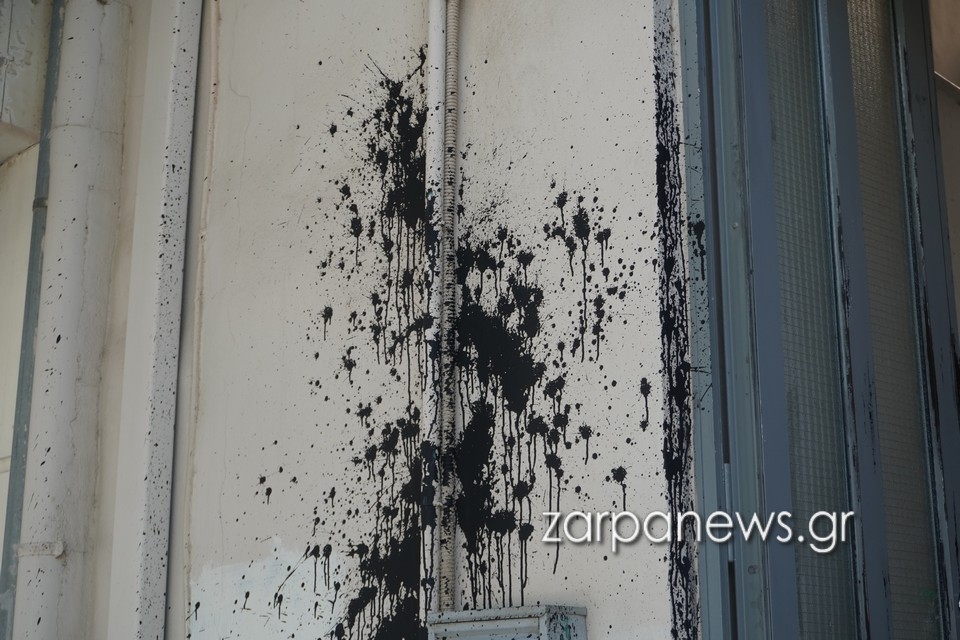 Όπως φαίνεται στις φωτογραφίες του zarpanews.gr το πολιτικό γραφείο του Χανιώτη βουλευτή στην οδό Α. Παπανδρέου στο κέντρο της πόλης έγινε στόχος αγνώστων, οι οποίοι πέταξαν μαύρες μπογιές στο κτήριο.
