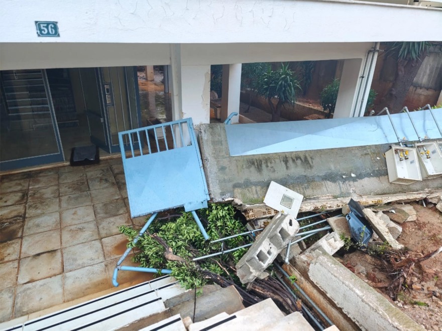Η κοπέλα που μένει στον πρώτο όροφο σηκώθηκαν και έφυγαν, έπαθε υστερία. Νόμιζε ότι θα γκρεμιζόταν το σπίτι γιατί η μάντρα έπεσε πάνω στις κολώνες και τραντάχτηκε όλη η πολυκατοικία», λέει ο κ. Παναγιώτης ο οποίος μένει στον πρώτο όροφο της πολυκατοικίας επί της οδού Λυσικράτους και αφού άκουσε έναν εκκωφαντικό θόρυβο από την κατάρρευση της μάντρας είδε τα ορμητικά νερά να φτάνουν μέχρι το μπαλκόνι του.