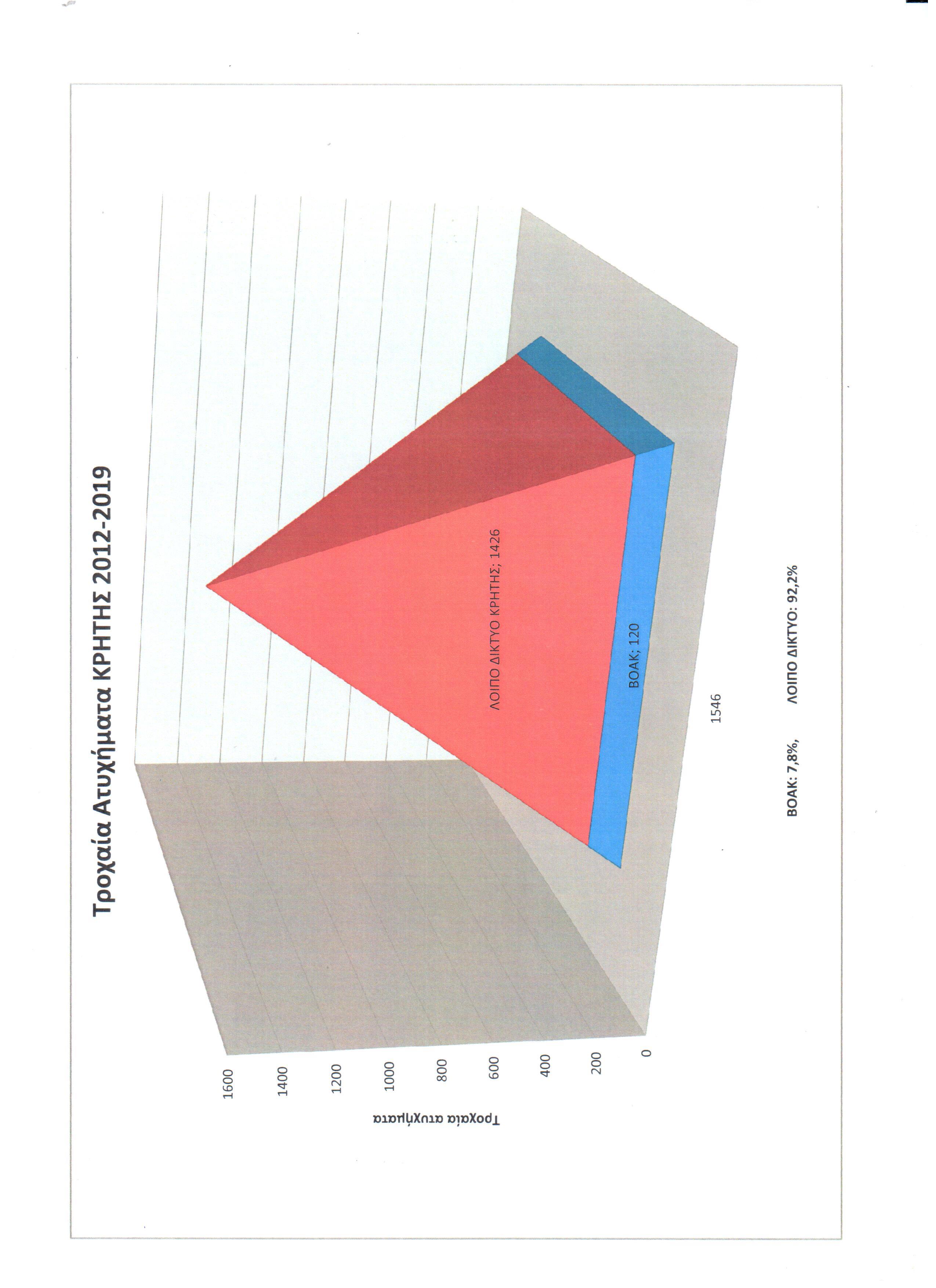 Αν όμως πιστεύετε, βλέποντας τα στοιχεία αυτά, ότι τα περισσότερα ατυχήματα γίνονται στον ΒΟΑΚ, κάνετε λάθος. Στην πραγματικότητα, στον ΒΟΑΚ συμβαίνει μόνο το 7,8% των τροχαίων στην Κρήτη. Το υπόλοιπο 92,2%, συμβαίνει στο υπόλοιπο οδικό δίκτυο, επαρχιακό και δημοτικό: