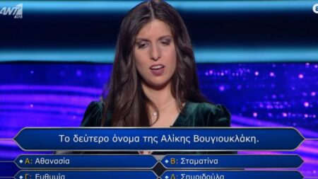 Ποιο ήταν το δεύτερο όνομα της Βουγιουκλάκη; Η ερώτηση – παγίδα που χάρισε στην παίκτρια του Εκατομμυριούχου 4.000 ευρώ