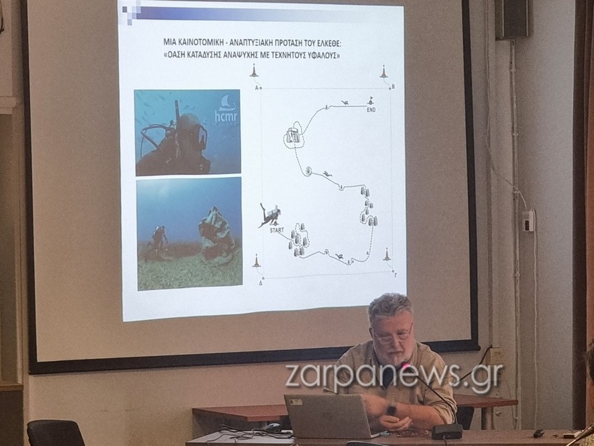 Ο Κώστας Ντούνας, ερευνητής του ΕΛΚΕΘΕ αναφέρθηκε στην παρουσίασή του στον καταδυτικό τουρισμό και στο πρώτο καταδυτικό πάρκο που ξεκινάει να υλοποιείται στον Αποκόρωνα.
