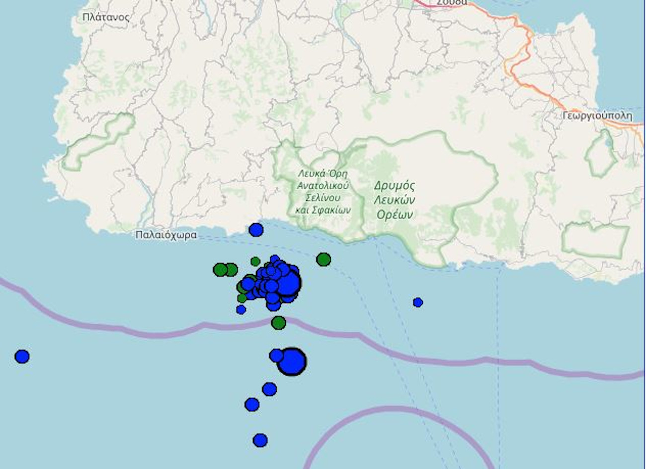 Από την προηγούμενη Παρασκευή έως και τη Δευτέρα το απόγευμα, σε διάστημα 80 ωρών είχαν καταγραφεί περισσότερες από 90 σεισμικές δονήσεις προερχόμενες από τον ίδιο εστιακό χώρο, τη θαλάσσια περιοχή ΝΑ της Παλαιοχώρας Χανίων και τρεις εξ αυτών είχαν μέγεθος 4,5 Ρίχτερ.