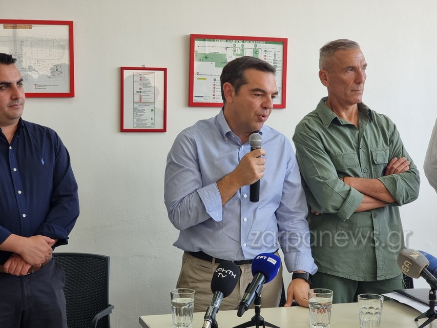 Τον πρώην πρωθυπουργό συνοδεύουν οι πρ. Υπουργοί Ευάγγελος Αποστολάκης, Γιώργος Σταθάκης και Παύλος Πολάκης ο υπ.Βουλευτής Επικρατείας Στέφανος Κασσελάκης και οι υποψήφιοι Βουλευτές Χανίων Γιώργος Πετράκης, Κατερίνα Μανιμανάκη, Βάλια Βαγιωνάκη και Μάγκυ Αρσενίδη