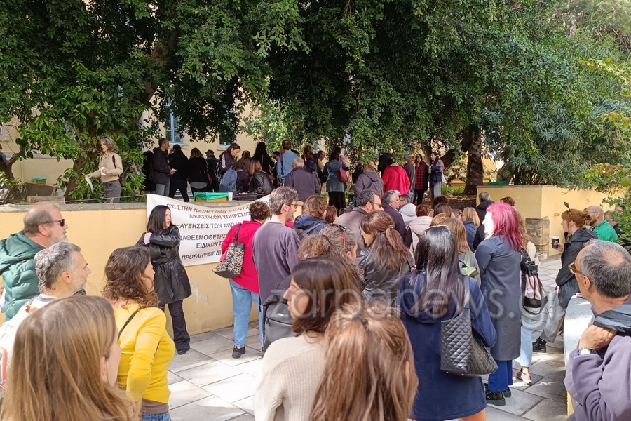 Νωρίτερα, οι εκπαιδευτικοί προχώρησαν σε παράσταση διαμαρτυρίας έξω από τα δικαστήρια Χανίων.
