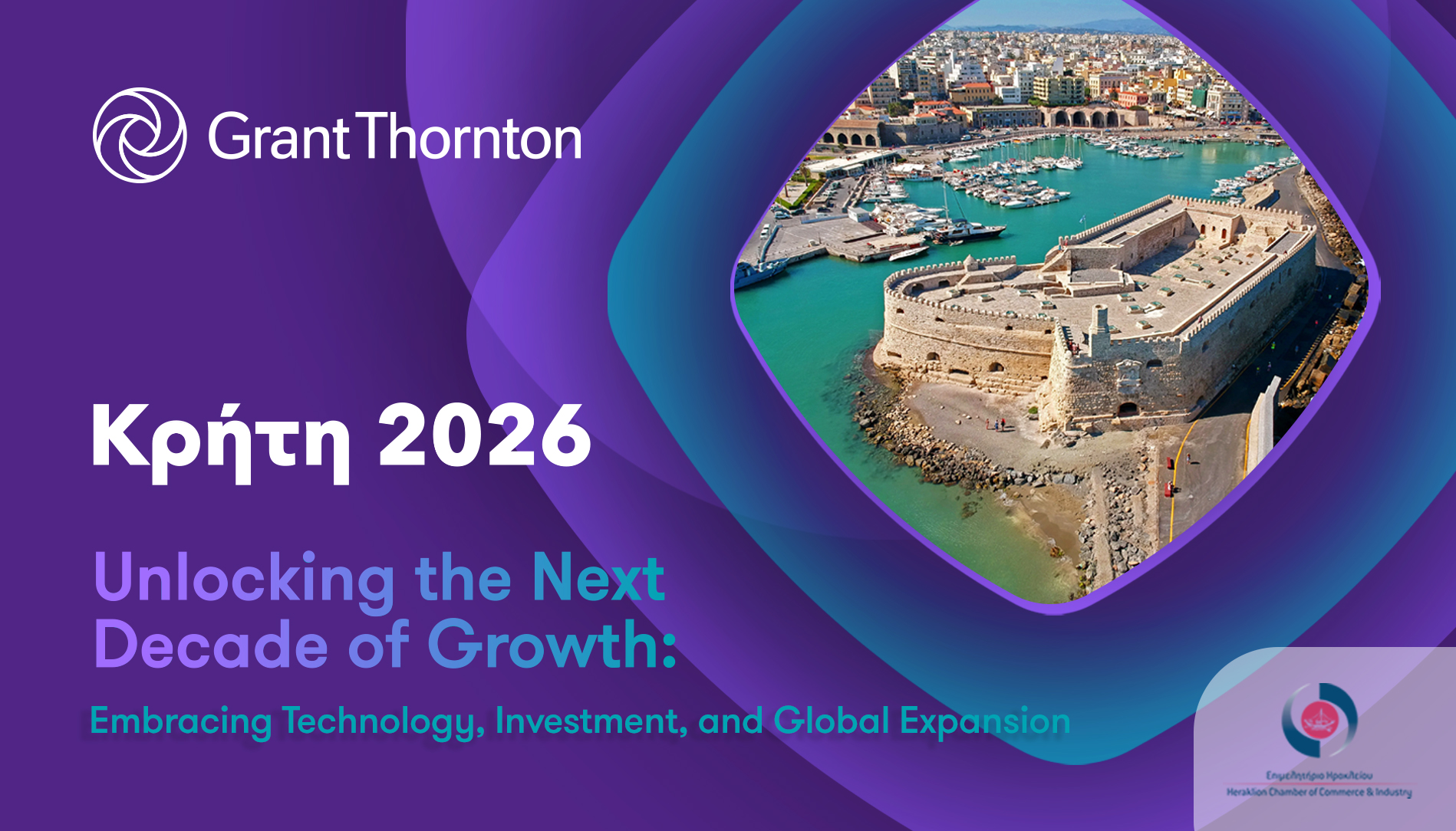 Η Grant Thornton διοργανώνει στις 11 Φεβρουαρίου 2026 στο Πολιτιστικό Συνεδριακό Κέντρο Ηρακλείου, την εκδήλωση με τίτλο “Unlocking the Next Decade of Growth: Embracing Technology, Investment, and Global Expansion” υπό την αιγίδα του Εμπορικού και Βιομηχανικού Επιμελητηρίου Ηρακλείου, που φιλοδοξεί να αποτελέσει σημείο αναφοράς για τον στρατηγικό διάλογο γύρω από το μέλλον της ελληνικής οικονομίας και του επιχειρείν στην Κρήτη.