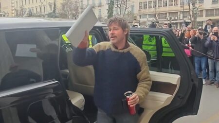 Αποθέωση για τον Μπραντ Πιτ τη στιγμή που μπαίνει στο δημαρχείο