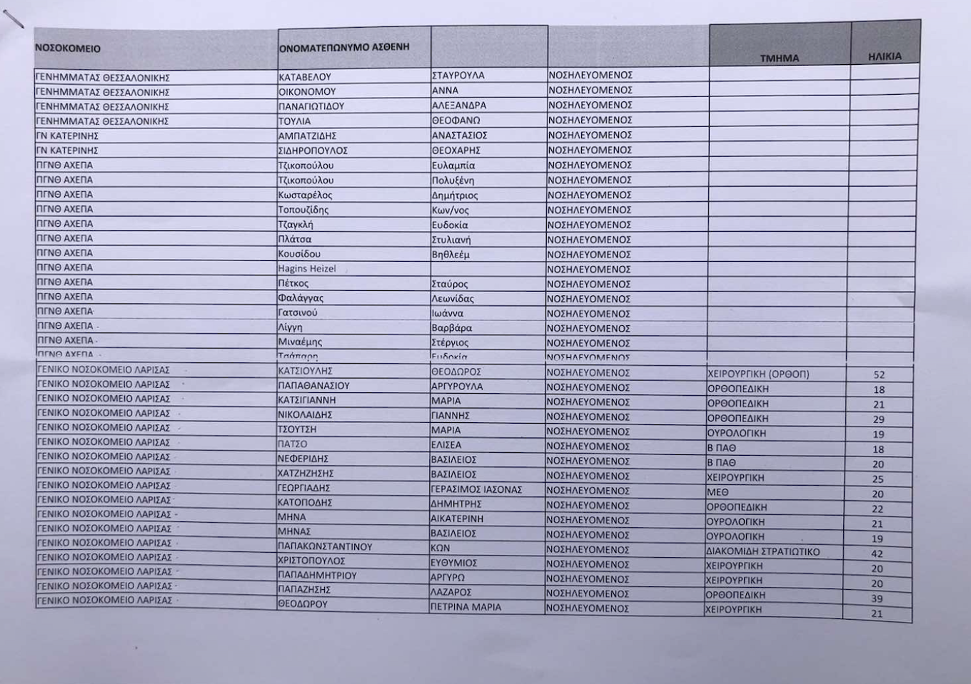 Δείτε τη λίστα που έφερε στο «φως» το onlarissa.gr, με τους τραυματίες που νοσηλεύονταν στα νοσοκομεία μετά την τραγωδία