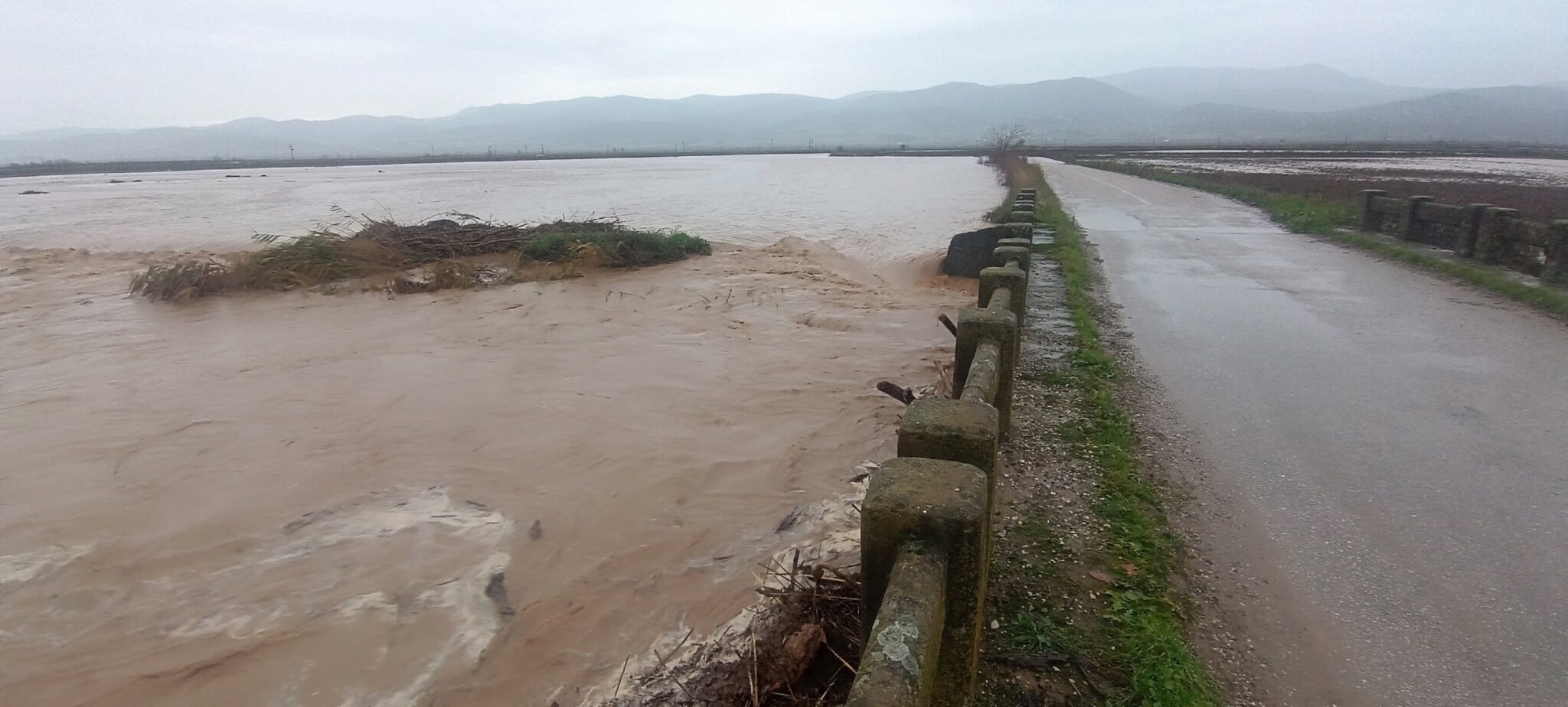 Ο ποταμός υπερχείλισε στην ευρεία κοίτη του στο ύψος του Βαλομανδρίου.