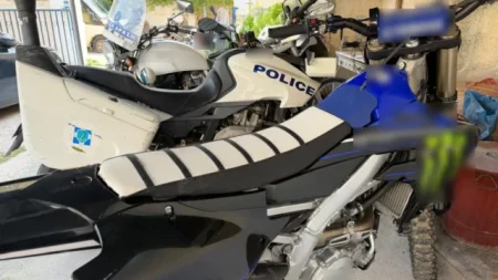 Η εν λόγω μοτοσυκλέτα εντοπίστηκε και κατασχέθηκε στην περιοχή της Αίγινας.