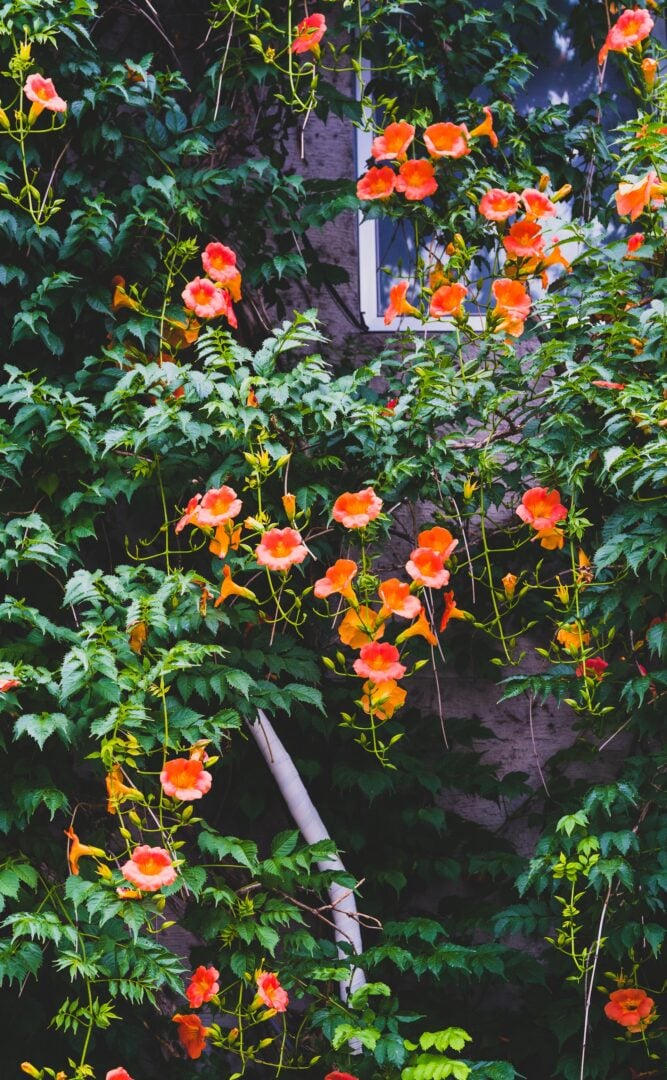 Αυτό το εκπληκτικό φυτό με τα πανέμορφα κόκκινα-πορτοκαλί άνθη, ευδοκιμεί σε ηλιόλουστες ή ημισκιασμένες συνθήκες — αλλά θα χρειαστεί τακτικό κλάδεμα για να μην σκεπάσει ολόκληρη τον κήπο σου.