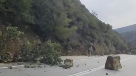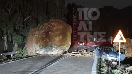 Βράχος αποκολλήθηκε και κατέληξε στον δρόμο μετά από κατολίσθηση – Χτύπησε διερχόμενο ΙΧ