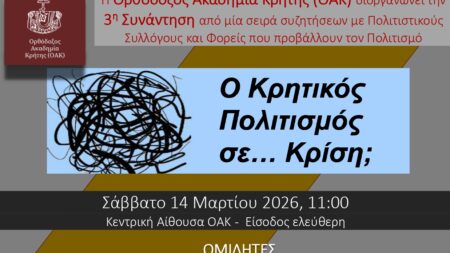 Χανιά | 3η Ημερίδα του κύκλου «Ο Κρητικός πολιτισμός σε… κρίση;» από την Ορθόδοξο Ακαδημία