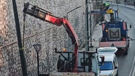 Γερανοφόρο όχημα ανετράπη και έπεσε σε κολώνα | Video
