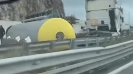Βυτιοφόρο όχημα εξετράπη της πορείας του και ανετράπη – Κλειστός ο δρόμος προς Θεσσαλονίκη | Video