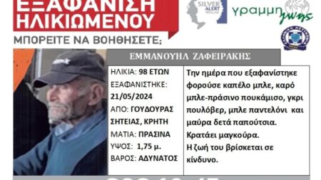 Κρήτη | Αυτός είναι ο 98χρονος παππούς που εξαφανίστηκε – Silver Alert για τον Μανώλη Ζαφειράκη
