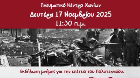 Χανιά | “Το κάλεσμα της νιότης”: Εκδήλωση μνήμης για την Επέτειο του Πολυτεχνείου από το Πειραματικό Γυμνάσιο
