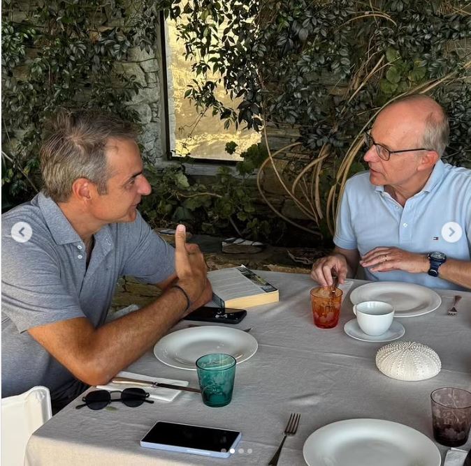 Ο πρωθυπουργός του Λουξεμβούργου, το Σάββατο (23/8), ανάρτησε στο Instagram φωτογραφία στην οποία ποζάρει χαμογελαστός μαζί με τη σύζυγό του, τον Κυριάκο Μητσοτάκη και τη Μαρέβα Γκραμπόφσκι.