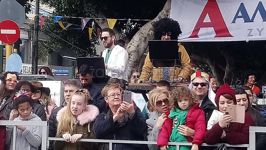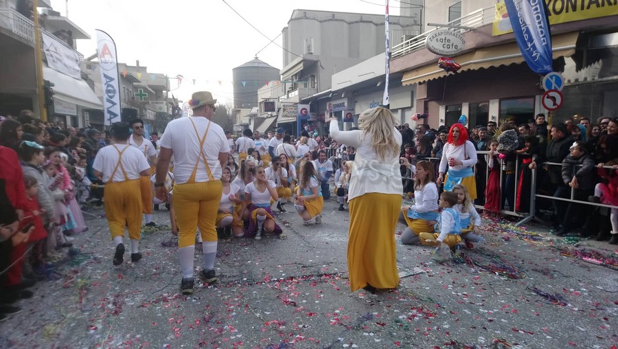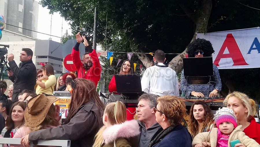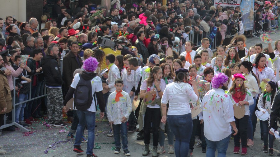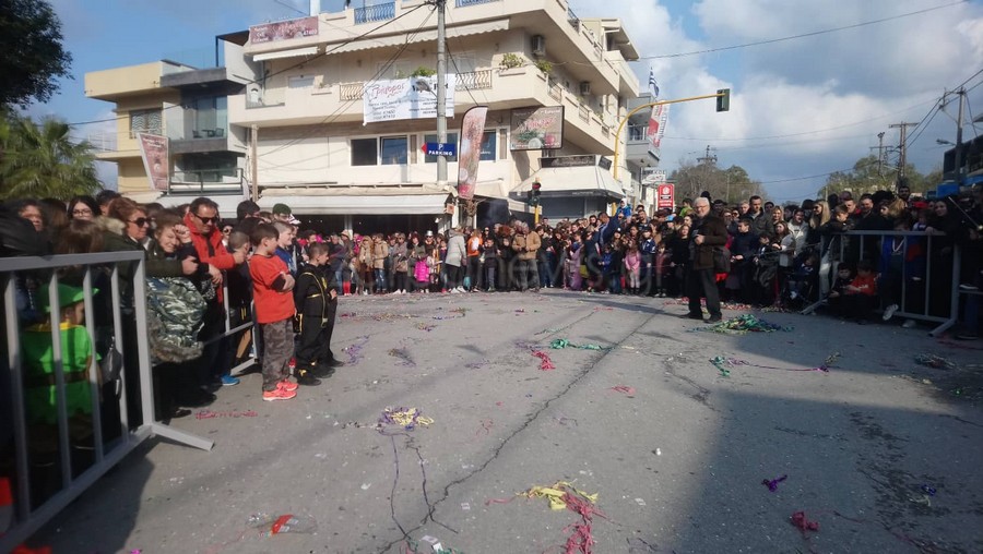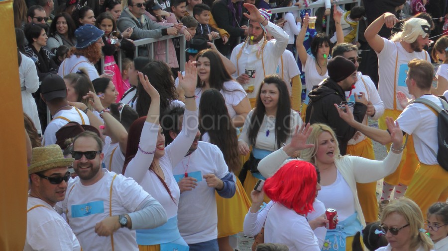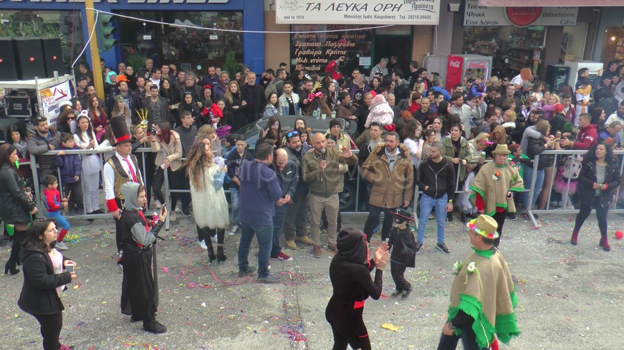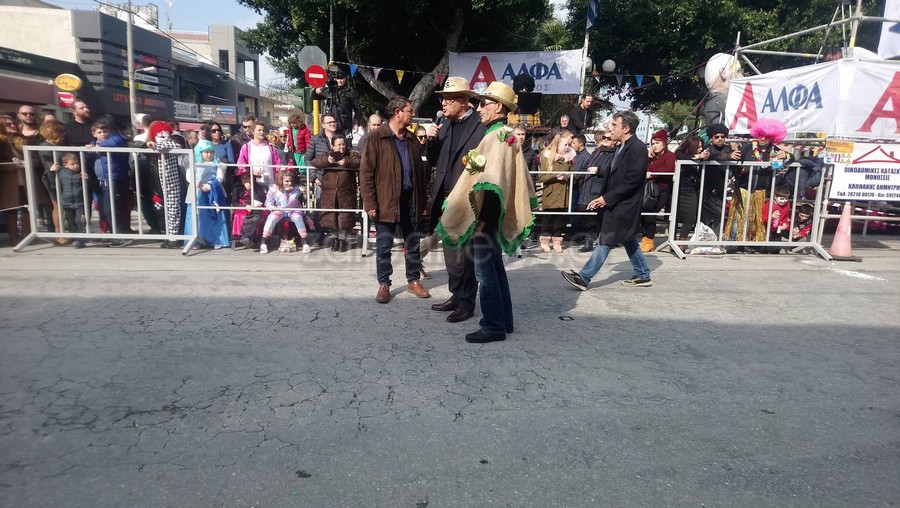 Η λαμπρή λιακάδα στέκεται σύμμαχος των καρναβαλιστών και του μεγάλου πλήθους του κόσμου που παρακολούθησε τις εκδηλώσεις που παρουσίασαν η Χριστίνα Κολέτσα και ο Φανής Λαμπρόπουλος.