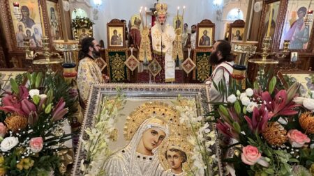 Κατόπιν ο Σεβ. Μητροπολίτης κ. Αμφιλόχιος με λόγια επίκαιρα, ωφέλιμα και πνευματικά μίλησε προς το ευσεβές εκκλησίασμα για την Παναγία μας και τον Άγιο Δημήτριο.