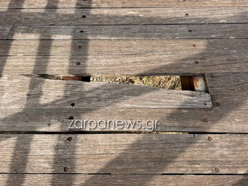 Σήμερα το πρωί, πολίτης που αθλούνταν στην περιοχή -όπου έχει διαμορφωθεί μνημειακή περιπατητική και ποδηλατική διαδρομή- από τύχη γλίτωσε το ατύχημα, όταν ενώ έτρεχε, κατέρρευσε ξύλο της γέφυρας κάτω από τα πόδια του.