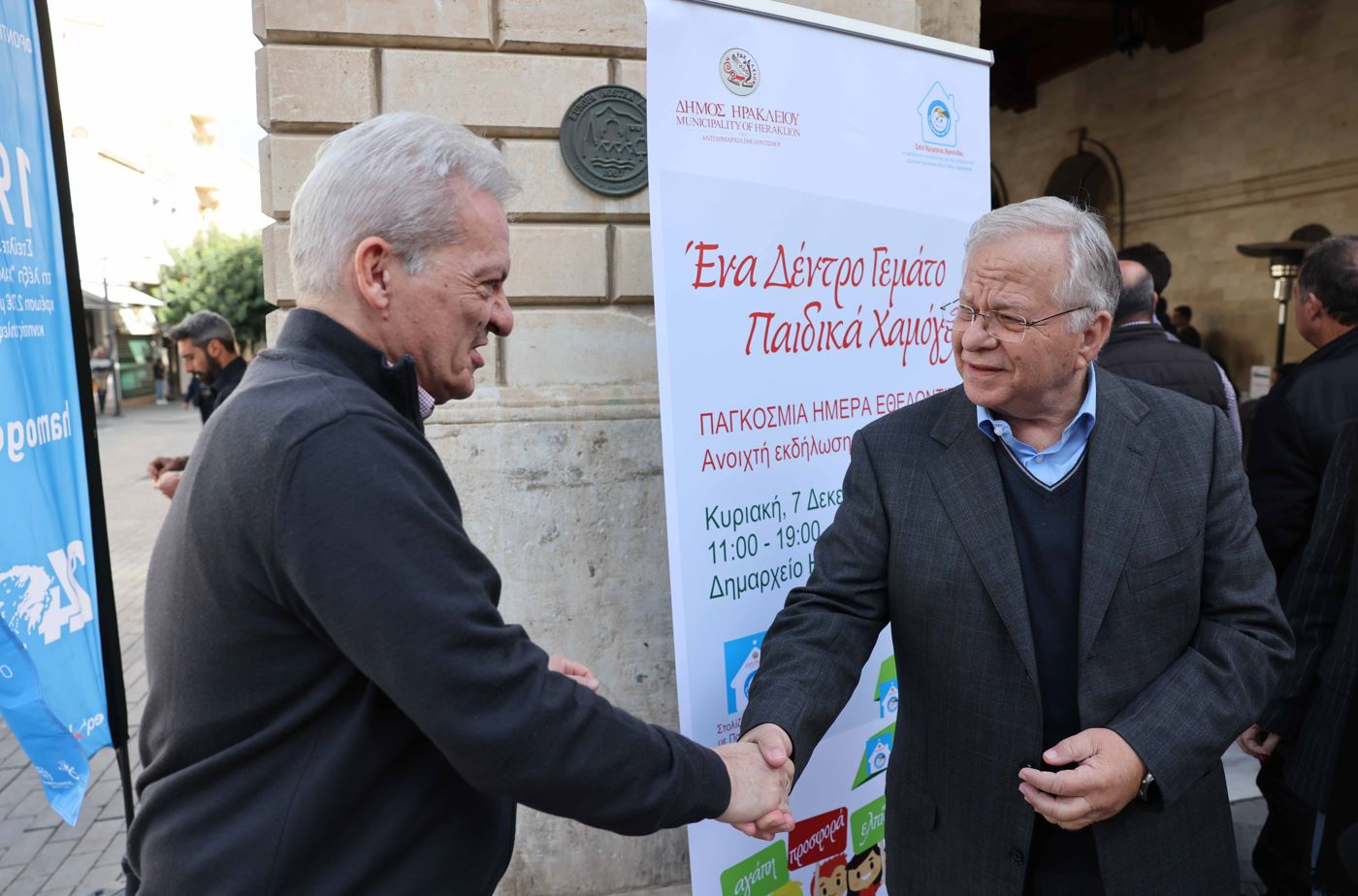 Ο Δήμαρχος Ηρακλείου Αλέξης Καλοκαιρινός παρακολούθησε τις δράσεις μαζί με τη σύζυγο του Άση Λυγερού και τον Πρόεδρο του «Χαμόγελου του Παιδιού» Κώστα Γιαννόπουλο, και μιλώντας για τον εθελοντισμό, έναν από τους σημαντικότερους πυλώνες της κοινωνικής πολιτικής του Δήμου, δήλωσε: «Είμαστε εδώ για την Παγκόσμια Ημέρα του Εθελοντισμού, αλλά ο εθελοντισμός είναι κάθε μέρα. Στον Δήμο Ηρακλείου θεωρούμε ότι πρέπει να ενθαρρύνουμε και να υποστηρίζουμε τις δράσεις του εθελοντισμού, αλλά όχι να τις κατευθύνουμε.